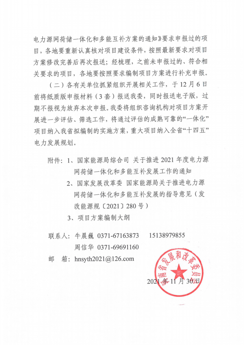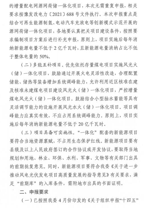 11月30日,河南省發(fā)改委發(fā)布了《關(guān)于補(bǔ)充申報“十四五”電力源網(wǎng)荷儲一體化和多能互補(bǔ)項目方案》的通知。在今年上半年河南發(fā)改委組織申報項目的基礎(chǔ)上,再次補(bǔ)充申報“一體化”項目。