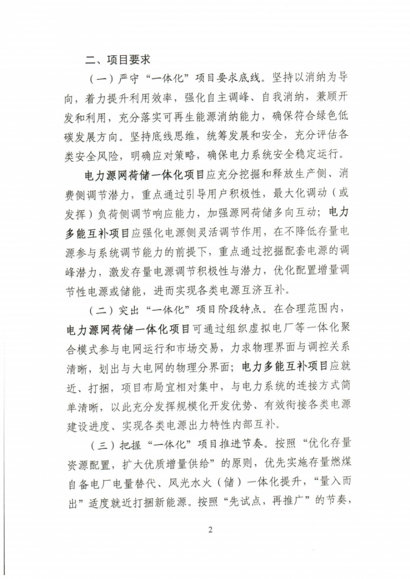 多能互補(bǔ)項目:優(yōu)先依托存量煤電項目實(shí)施風(fēng)光火(儲)一體化項目,鼓勵通過開展火電靈活性改造,合理配置儲能、儲熱等裝備增加系統(tǒng)調(diào)峰能力,允許利用近區(qū)核準(zhǔn)在建及核準(zhǔn)未建煤電項目建設(shè)風(fēng)光火(儲)一體化項目,嚴(yán)控增量煤電風(fēng)光火(儲)一體化項目。鼓勵結(jié)合小型抽水蓄能等具有靈活調(diào)節(jié)能力的設(shè)施開展風(fēng)光水火(儲)一體化項目。項目調(diào)峰能力應(yīng)真實(shí)有效,不應(yīng)占用系統(tǒng)調(diào)峰能力。