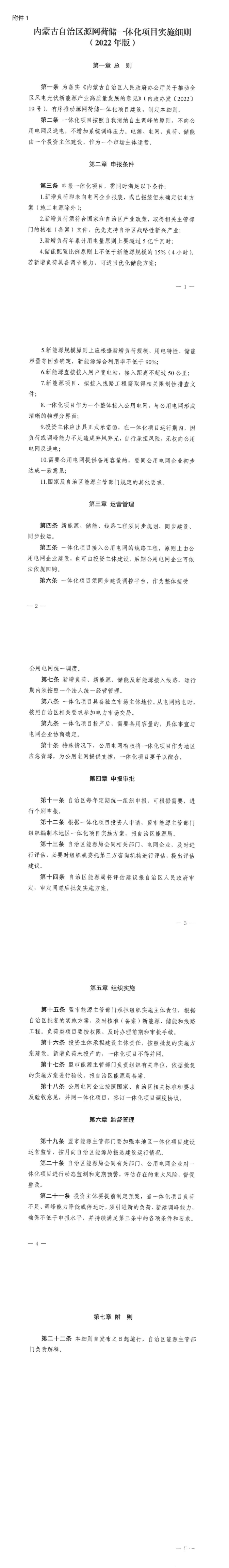 7月27日,內(nèi)蒙古能源局發(fā)布《內(nèi)蒙古自治區(qū)源網(wǎng)荷儲(chǔ)一體化項(xiàng)目實(shí)施細(xì)則(2022年版)》,其中提出,一體化項(xiàng)目按照自我消納自主調(diào)峰的原則,不向公用電網(wǎng)反送電,不增加系統(tǒng)調(diào)峰壓力。電源、電網(wǎng)、負(fù)荷、儲(chǔ)能由一個(gè)投資主體建設(shè),作為一個(gè)市場主體運(yùn)營。