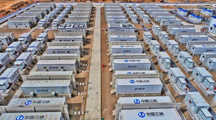 2021年末,三峽烏蘭察布新一代電網(wǎng)友好綠色電站示范項目首批機組成功并入內(nèi)蒙古電網(wǎng),成為國內(nèi)首個儲能配置規(guī)模達到千兆瓦時的新能源場站。電站總建設(shè)規(guī)模200萬千瓦,分為170萬千瓦風(fēng)電項目和30萬千瓦光伏項目,全部投產(chǎn)后,年平均發(fā)電量近60億千瓦時,可滿足近30萬戶家庭月用電量(按每戶居民月用電量200千瓦時計)。項目配套建設(shè)55萬千瓦×2小時儲能系統(tǒng),可儲存110臺5兆瓦風(fēng)機滿發(fā)2小時產(chǎn)生的能量,在陰天或無風(fēng)時有效“查漏補缺”,為電網(wǎng)系統(tǒng)調(diào)峰調(diào)頻等提供輔助服務(wù)。