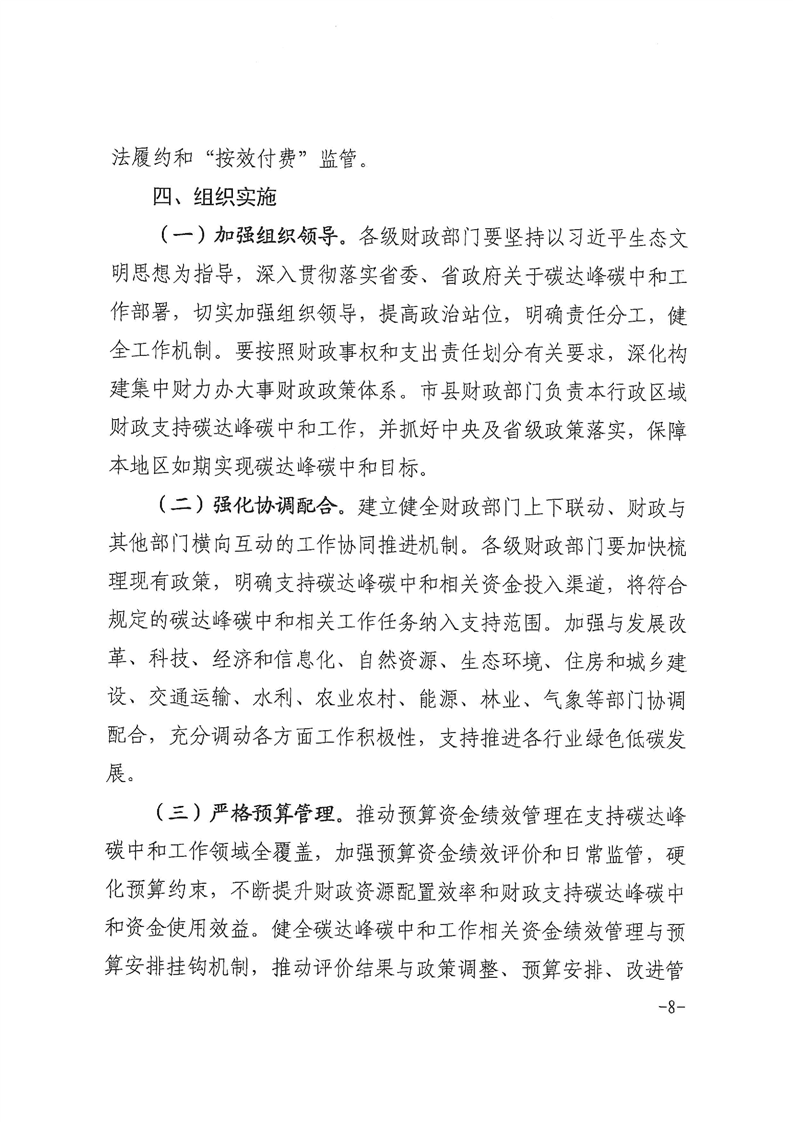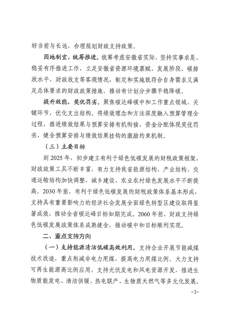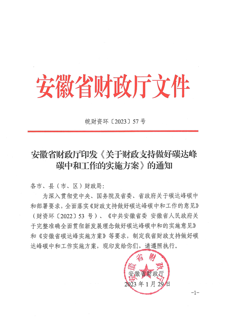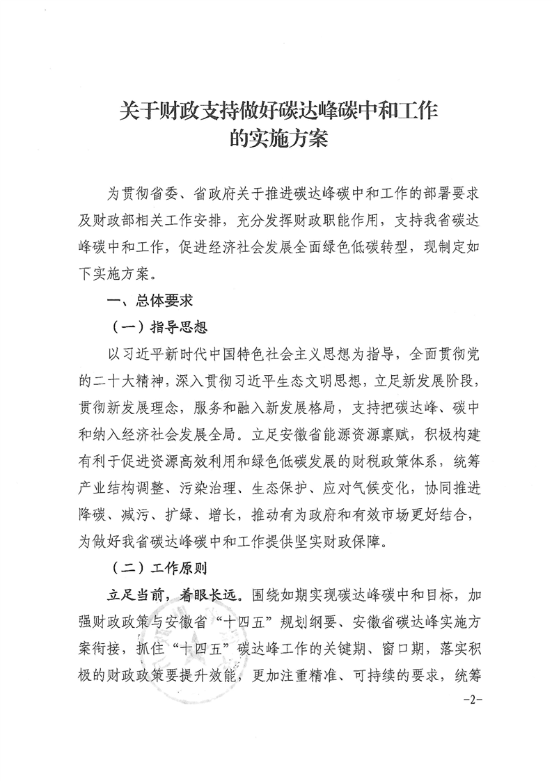 1月29日,安徽省財政廳印發(fā)《關于財政支持做好碳達峰碳中和工作的實施方案》的通知。