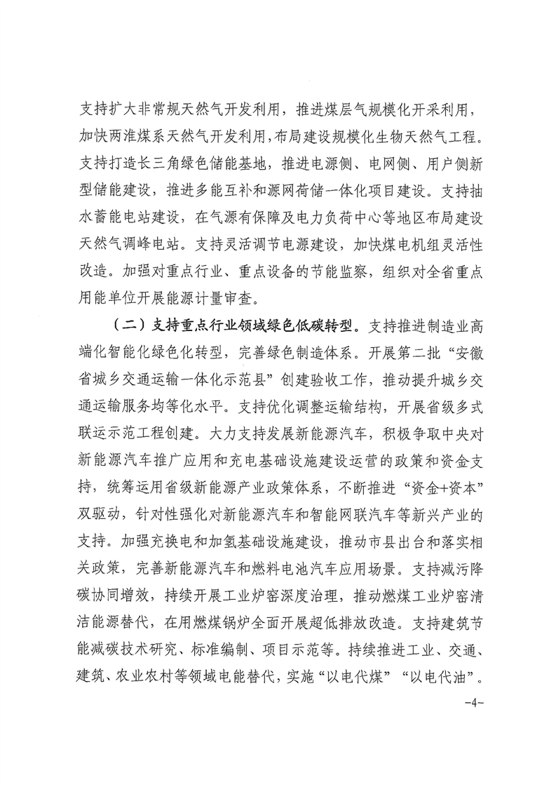 通知指出,支持企業(yè)開展節(jié)能減煤技術改造,重點削減非電力用煤,提高電力用煤比例。大力支持可再生能源高比例應用,支持光伏發(fā)電和風電資源開發(fā),推進生物質能發(fā)電、清潔供暖、熱電聯產、生物質天然氣等多元化發(fā)展。支持擴大非常規(guī)天然氣開發(fā)利用,推進煤層氣規(guī)?;_采利用,加快兩淮煤系天然氣開發(fā)利用,布局建設規(guī)?;锾烊粴夤こ獭VС执蛟扉L三角綠色儲能基地,推進電源側、電網側、用戶側新型儲能建設,推進多能互補和源網荷儲一體化項目建設。支持抽水蓄能電站建設,在氣源有保障及電力負荷中心等地區(qū)布局建設天然氣調峰電站。支持靈活調節(jié)電源建設,加快煤電機組靈活性改造。加強對重點行業(yè)、重點設備的節(jié)能監(jiān)察,組織對全省重點用能單位開展能源計量審查。