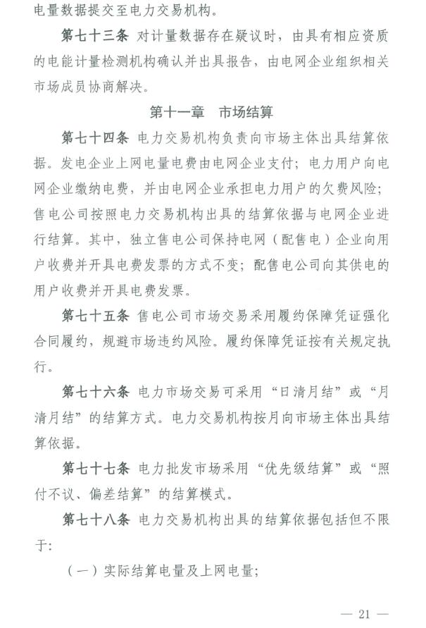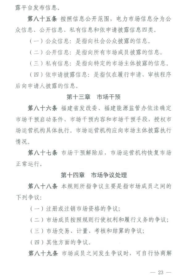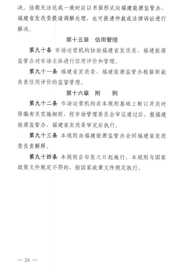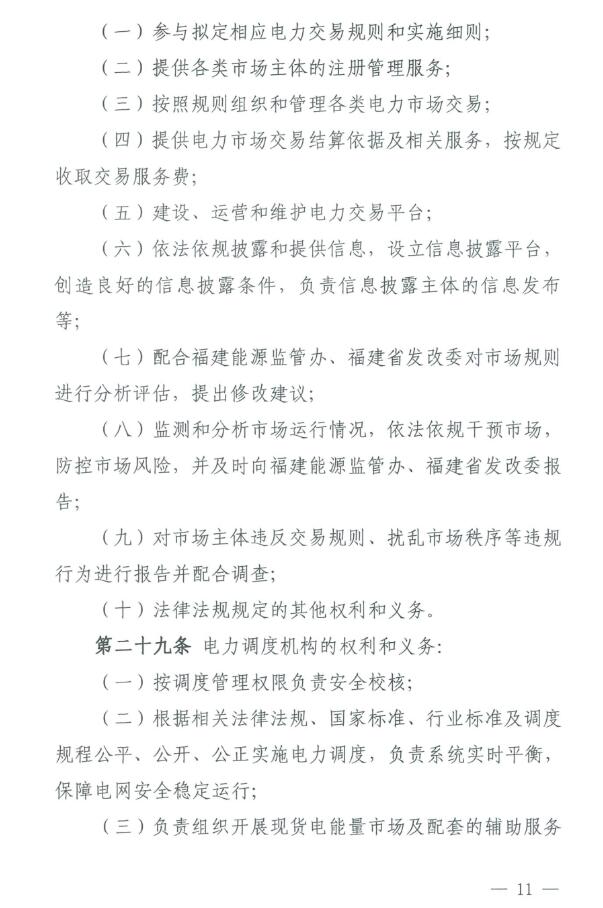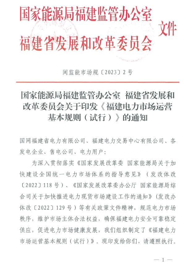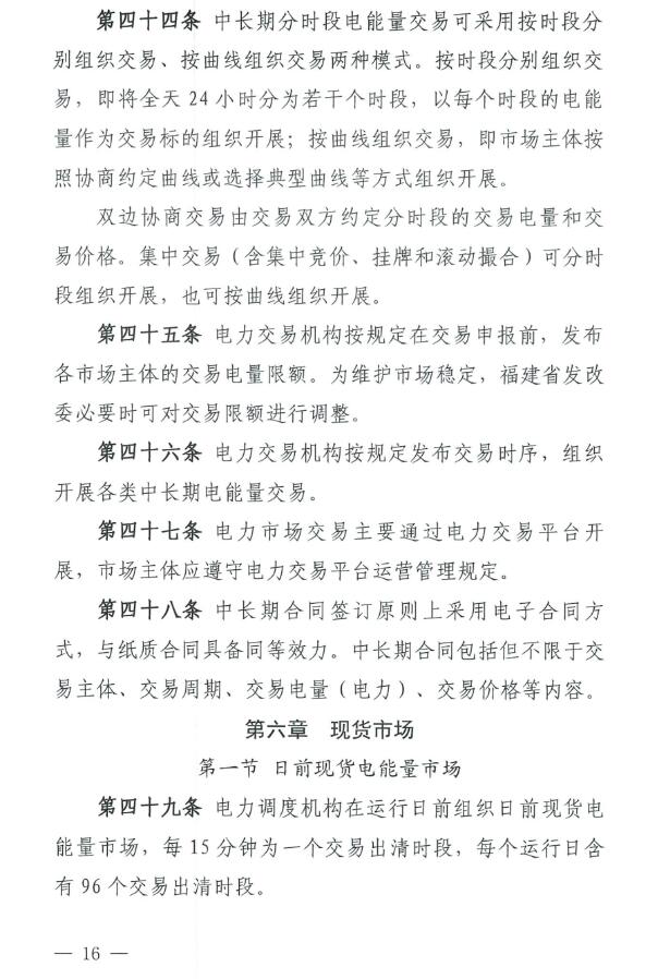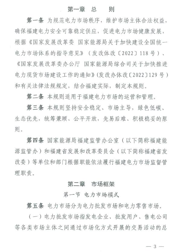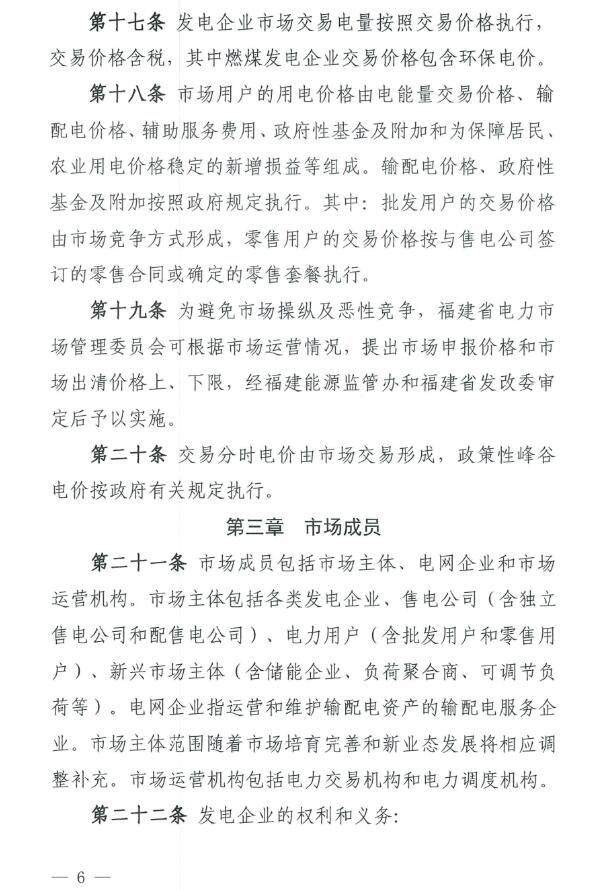 《福建電力市場運營基本規(guī)則(試行)》原文如下: