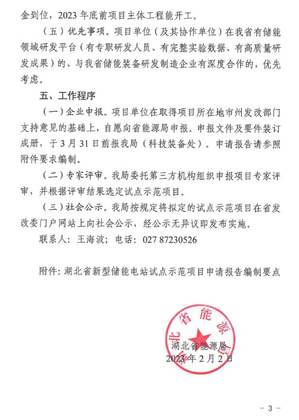 湖北省能源局印發(fā)《關(guān)于開展新型儲能電站試點示范工作的通知》