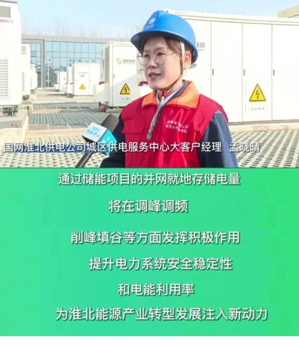國網(wǎng)淮北供電公司工作人員在接受淮北市傳媒中心采訪時表示,通過儲能項目的并網(wǎng)就地存儲電量,將在調(diào)峰調(diào)頻、峰填谷等方面發(fā)揮積極作用,提升電力系統(tǒng)安全穩(wěn)定性和電能利用率,淮北能源產(chǎn)業(yè)轉(zhuǎn)型發(fā)展注入新動力。