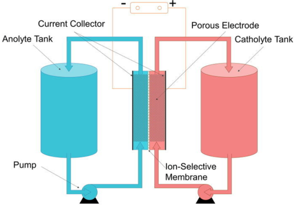 液流電池是正負極電解液分開,各自循環(huán)的一種高性能蓄電池,具有容量高、使用領(lǐng)域(環(huán)境)廣、循環(huán)使用壽命長的特點。根據(jù)電極活性物質(zhì)的不同可分為鐵鉻、全釩、鋅溴等,鐵鉻和全釩兩種為目前主流商用方向。