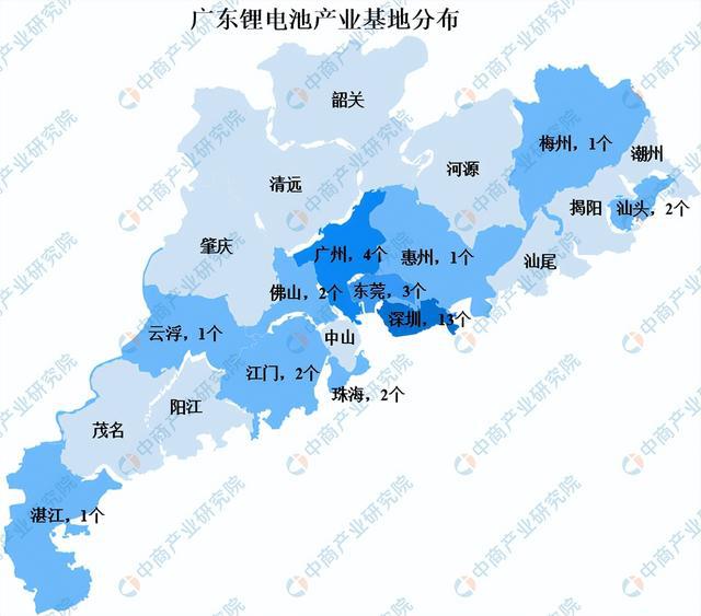 廣東是國內(nèi)重要的鋰電池基地,主要集中分布在珠三角地區(qū)。其中,深圳13個(gè),廣州4個(gè),東莞3個(gè),佛山、江門、汕頭、珠海各2個(gè),惠州、梅州、云浮、湛江各1個(gè)。