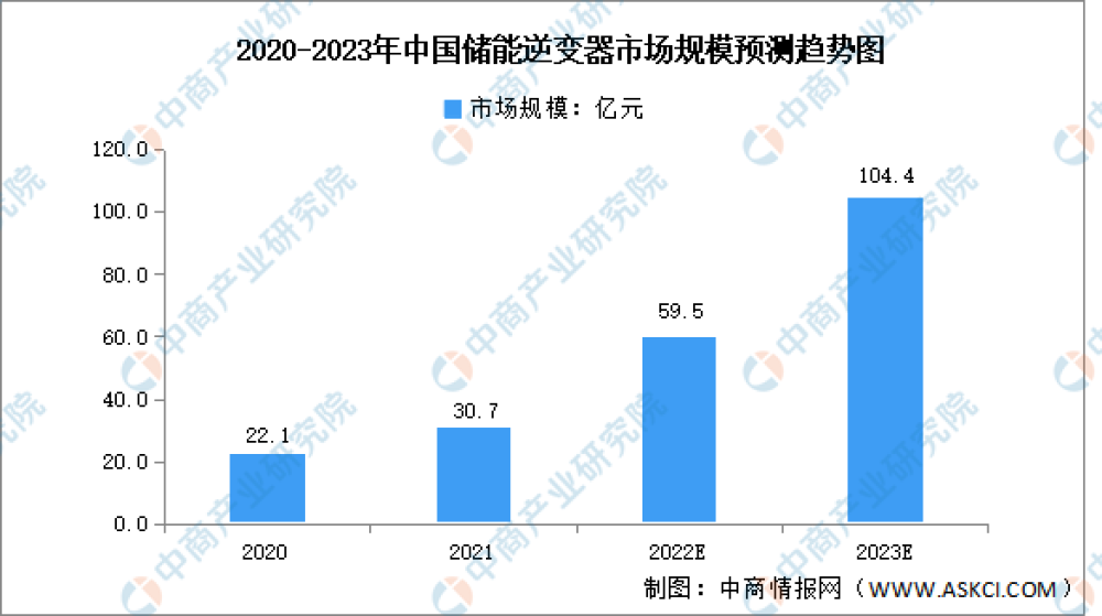 近年來,我國(guó)儲(chǔ)能市場(chǎng)顯現(xiàn)出高速增長(zhǎng)態(tài)勢(shì),催生對(duì)于儲(chǔ)能逆變器的巨大需求,儲(chǔ)能逆變器市場(chǎng)前景廣闊。數(shù)據(jù)顯示,2020年我國(guó)儲(chǔ)能逆變器市場(chǎng)規(guī)模達(dá)22.1億元,2021年進(jìn)一步增長(zhǎng)至30.7億元,同比增長(zhǎng),預(yù)計(jì)2023年我國(guó)儲(chǔ)能逆變器市場(chǎng)規(guī)模將達(dá)104.4億元。