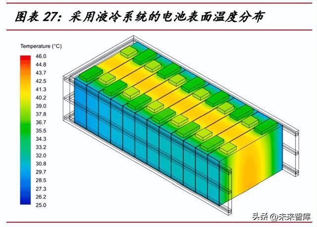 液冷系統(tǒng)一般采用乙二醇水溶液作為冷卻劑,冷卻液流經(jīng)集成在電池系統(tǒng)內(nèi)部的 液冷板,以降低電池溫度。液冷系統(tǒng)可使電池之間的堆疊更加緊密以提高能量密度; 并且具備更強的散熱性能,降低電池溫差,提升一致性水平,降低熱失控風(fēng)險。液冷 技術(shù)此前在 SVG、數(shù)據(jù)中心、直流設(shè)備、電動汽車等領(lǐng)域已廣泛使用,在儲能領(lǐng)域 的新應(yīng)用也逐步成為市場的主流選擇。