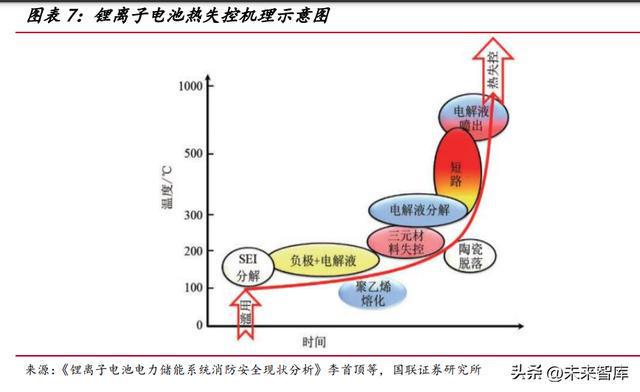復(fù)雜的電池材料和密集系統(tǒng)結(jié)構(gòu)加大儲能熱管理難度。由于商業(yè)化儲能鋰離子 電池采用的是沸點低、易燃有機電解液,其電解質(zhì)材料熱值較高,當(dāng)電池本體或相關(guān) 電氣設(shè)備運行發(fā)生故障時,容易引發(fā)電池材料熱副反應(yīng),誘發(fā)電池?zé)崾Э?。而且儲?系統(tǒng)中大量電池緊密排列在一個空間內(nèi),高低倍率交錯運行,容易造成熱量聚集、溫 度分布不均勻、電池間溫差較大等問題,導(dǎo)致電池的性能、容量和壽命下降,發(fā)生連 鎖反應(yīng),甚至引發(fā)熱失控,誘發(fā)安全事故。