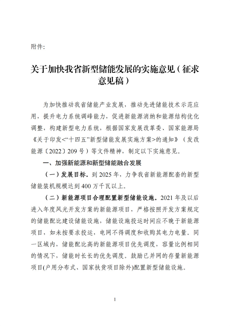 附件: 加快我省新型儲(chǔ)能發(fā)展的實(shí)施意見(征求意見稿 )