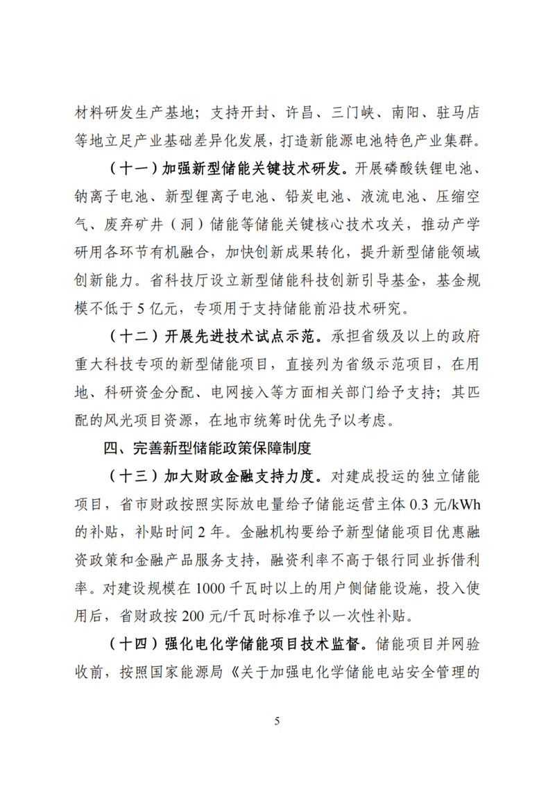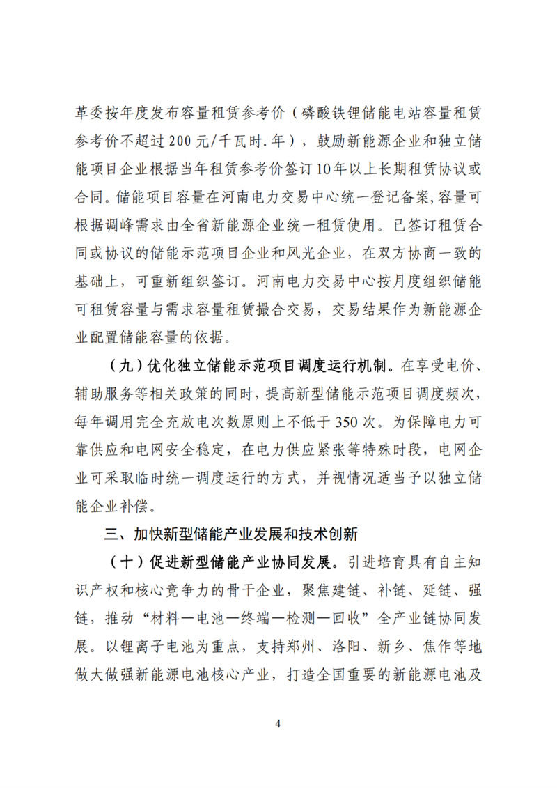 4月25日,河南發(fā)改委發(fā)布《加快我省新型儲(chǔ)能發(fā)展的實(shí)施意見(征求意見稿)》?!段募分赋觯訌?qiáng)新能源和新型儲(chǔ)能融合發(fā)展,發(fā)展目標(biāo)為到2025年,力爭(zhēng)我省新能源配套的新型儲(chǔ)能裝機(jī)規(guī)模達(dá)到400萬千瓦以上。2021年及以后進(jìn)入年度風(fēng)光開發(fā)方案的新能源項(xiàng)目,嚴(yán)格按照開發(fā)方案規(guī)定的儲(chǔ)能配比建設(shè)儲(chǔ)能設(shè)施,儲(chǔ)能設(shè)施投運(yùn)時(shí)間應(yīng)不晚于新能源項(xiàng)目,如未按要求投運(yùn),電網(wǎng)不得調(diào)度和收購其電力電量。同一區(qū)域內(nèi),儲(chǔ)能配比高的新能源項(xiàng)目?jī)?yōu)先調(diào)度,容量比例相同的情況下,儲(chǔ)能時(shí)長(zhǎng)長(zhǎng)的優(yōu)先調(diào)度。鼓勵(lì)已并網(wǎng)的存量新能源項(xiàng)目(戶用分布式、國(guó)家扶貧項(xiàng)目除外)配置新型儲(chǔ)能設(shè)施。重點(diǎn)發(fā)展大型獨(dú)立儲(chǔ)能電站。發(fā)揮大型儲(chǔ)能電站調(diào)節(jié)能力強(qiáng)、易調(diào)度的優(yōu)勢(shì),重點(diǎn)建設(shè)容量不低于10萬千瓦時(shí)的獨(dú)立儲(chǔ)能電站。對(duì)新能源企業(yè)配建的、容量不低于10萬千瓦時(shí)、具有法人資格的新型儲(chǔ)能項(xiàng)目,按照自愿原則,在具備獨(dú)立計(jì)量、控制等技術(shù)條件,達(dá)到相關(guān)標(biāo)準(zhǔn)規(guī)范和電力市場(chǎng)運(yùn)營(yíng)機(jī)構(gòu)等有關(guān)方面要求,并接入調(diào)度自動(dòng)化系統(tǒng)可被電網(wǎng)監(jiān)控和調(diào)度的基礎(chǔ)上,可轉(zhuǎn)為獨(dú)立儲(chǔ)能。