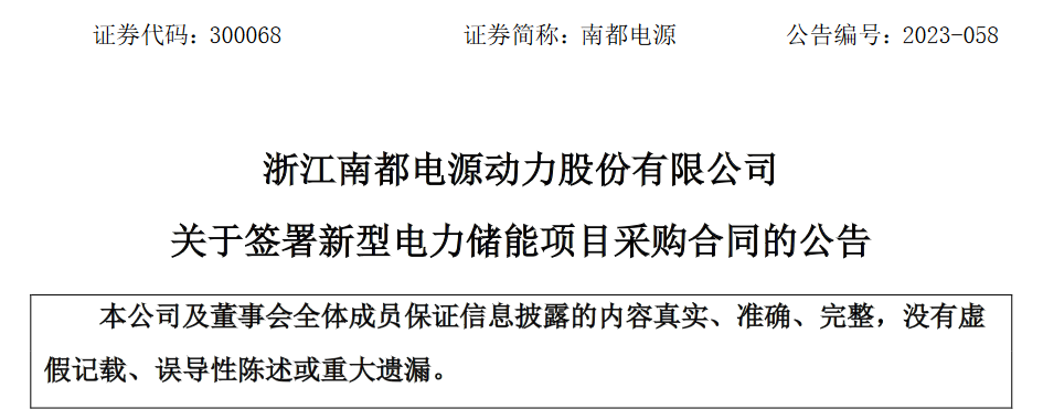 南都電源動(dòng)力股份有限公司簽署2.9億元新型電力儲(chǔ)能項(xiàng)目采購(gòu)合同