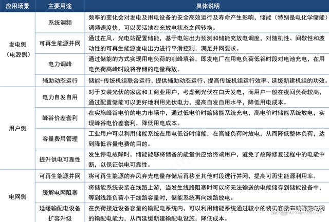 發(fā)電側(cè)可用于系統(tǒng)調(diào)頻、可再生能源并網(wǎng)、電力調(diào)峰、輔助動態(tài)運行等;在用戶側(cè)主要用于電力自發(fā)自用、峰谷價差套利、容量電費管理和提升供電可靠性等;在電網(wǎng)側(cè)主要用于可再生能源并網(wǎng)、緩解電網(wǎng)阻塞、延緩輸配電設備擴容升級等。