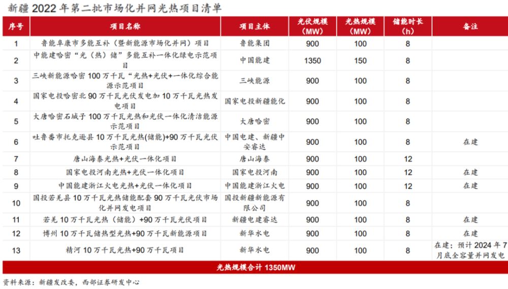 一方面,新疆、青海陸續(xù)發(fā)布第二批新能源項(xiàng)目清單,其中光熱項(xiàng)目規(guī)模分別達(dá)到1350MW、400MW,占比均達(dá)到 20%以上。同時(shí),新疆發(fā)改委提出鼓勵(lì)光伏與儲(chǔ)熱型光熱發(fā)電以 9∶1 規(guī)模配建。