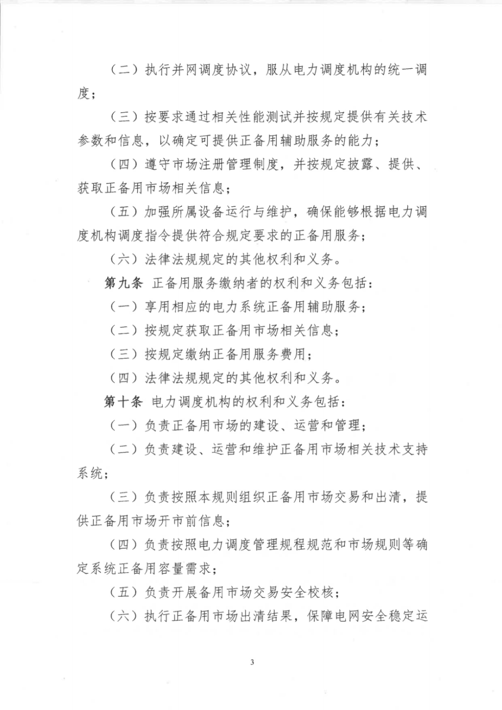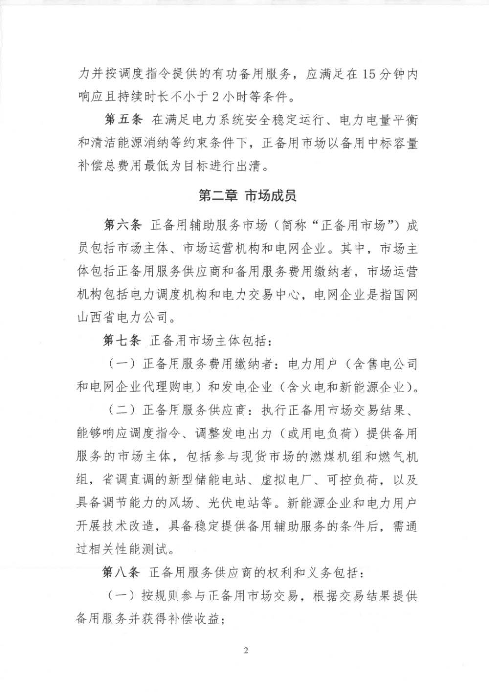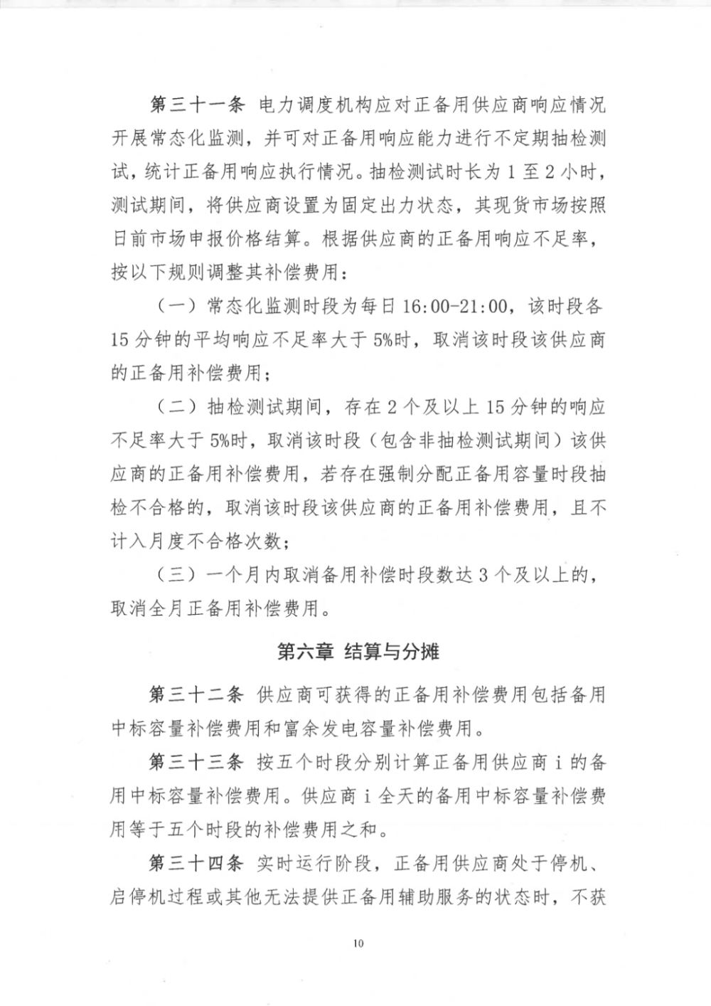 (二)正備用服務(wù)供應(yīng)商:執(zhí)行正備用市場交易結(jié)果、能夠響應(yīng)調(diào)度指令、調(diào)整發(fā)電出力(或用電負(fù)荷)提供備用服務(wù)的市場主體,包括參與現(xiàn)貨市場的燃煤機(jī)組和燃?xì)鈾C(jī)組,省調(diào)直調(diào)的新型儲能電站、虛擬電廠、可控負(fù)荷,以及具備調(diào)節(jié)能力的風(fēng)場、光伏電站等。新能源企業(yè)和電力用戶開展技術(shù)改造,具備穩(wěn)定提供備用輔助服務(wù)的條件后,需通過相關(guān)性能測試。