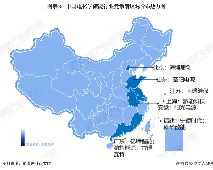 電化學(xué)儲(chǔ)能產(chǎn)業(yè)鏈區(qū)域熱力圖:主要分布在沿海地區(qū)