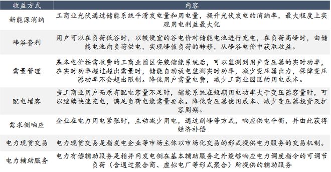 同時(shí),工商業(yè)儲(chǔ)能電站收益方式相對(duì)多樣,具有保障分布式能源消納、峰谷套利、需量管理、配電增容、需求側(cè)響應(yīng)、參與電力現(xiàn)貨市場(chǎng)交易、參與電力輔助服務(wù)等多種現(xiàn)存與潛在受益方式。