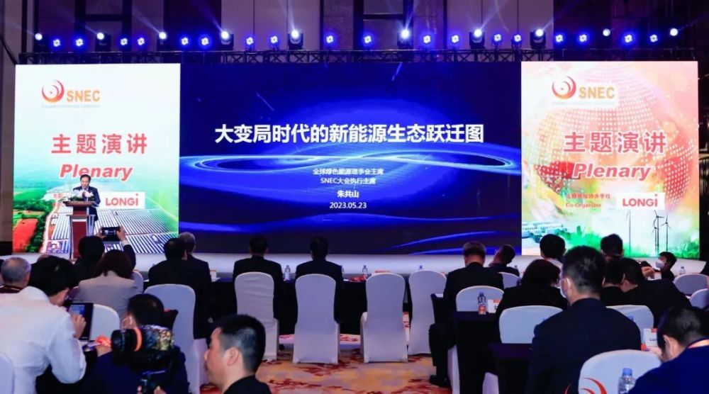 5月23日上午,在第十六屆SNEC全球光伏大會(huì)上,協(xié)鑫集團(tuán)董事長朱共山發(fā)表《大變局時(shí)代的新能源生態(tài)躍遷圖》主題演講。