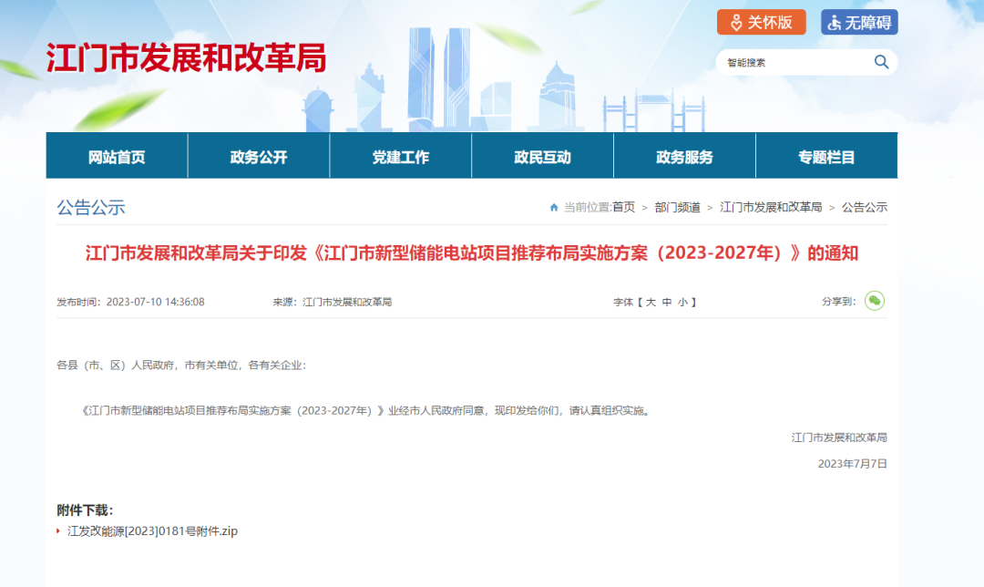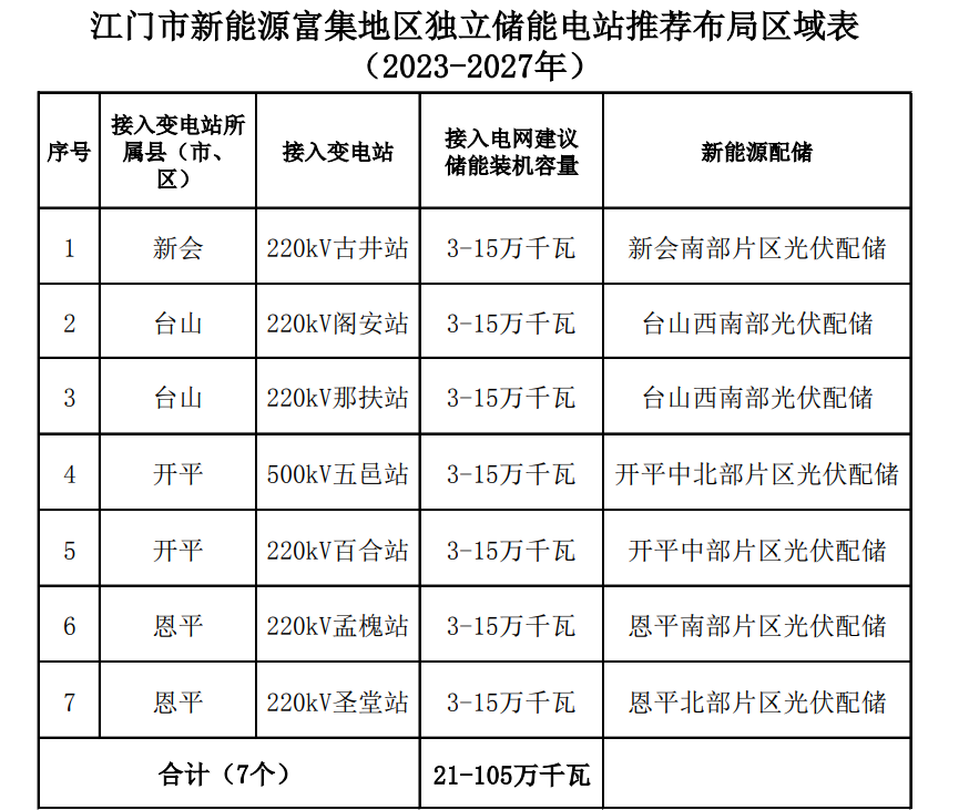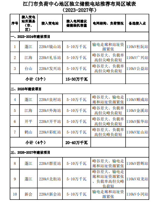 江門發(fā)展改革局印發(fā)《江門市新型儲能電站項目推薦布局實施方案(2023-2027 年)》(簡稱:《方案》)。