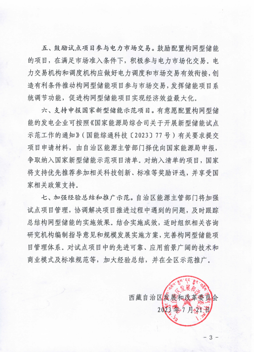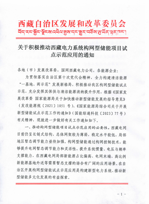 7月24日,西藏自治區(qū)發(fā)展和改革委員會印發(fā)關于積極推動西藏電力系統(tǒng)構網(wǎng)型儲能項目試點應用的通知(以下簡稱“通知”)。