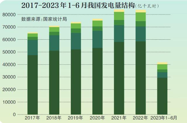“新能源不僅在外貿(mào)上的表現(xiàn)讓人眼前一亮,在迎峰度夏上的保供表現(xiàn)也是出人意料。”今年上半年我國(guó)水力發(fā)電量較去年同期大幅下降,但是風(fēng)電、太陽(yáng)能為主的新能源的電力增長(zhǎng)有效彌補(bǔ)了來水偏枯導(dǎo)致的水電發(fā)電量下滑。新能源在迎峰度夏保供上表現(xiàn)非常亮眼,有效地支持了能耗雙控向碳排放雙控轉(zhuǎn)變。