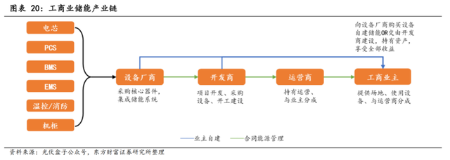 根據(jù)工商業(yè)儲能運營模式的不同,可以分為自建和合同能源管理模式。據(jù)東方財富證券: