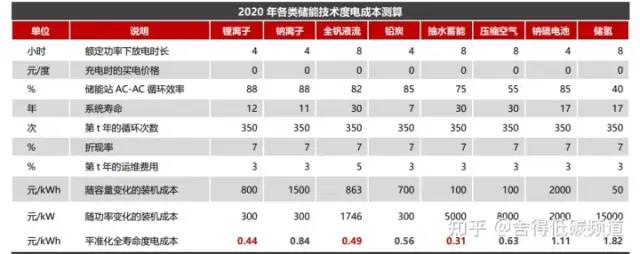 1、從2020 年來看,各類儲能技術(shù)度電成本的排序從低到高分別是:抽水蓄能<鋰離子電池<全釩液流電池<鉛炭電池<壓縮空氣<鈉離子電池<鈉硫電池<氫儲能。