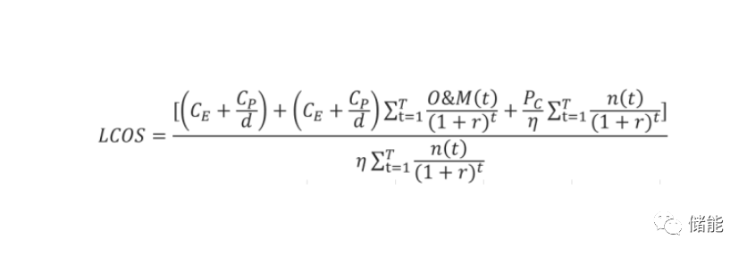 相類似地,儲能的全生命周期成本即平準化儲能成本(Levelized Cost of Storage,LCOS)。LCOS 可以概括為一項儲能技術(shù)的全生命周期成本除以其累計傳輸?shù)碾娔芰炕螂姽β?,反映了凈現(xiàn)值為零時的內(nèi)部平均電價,即該項投資的盈利點。平準化儲能成本(LCOS)量化了特定儲能技術(shù)和應(yīng)用場景下單位放電量的折現(xiàn)成本,考慮了影響放電壽命成本的所有技術(shù)和經(jīng)濟參數(shù),可以與平準化度電成本 (LCOE)類比,是進行儲能技術(shù)成本比較的合適工具。