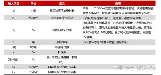如公式中所示,CE 為隨容量變化的裝機成本,CP 為隨功率變化的裝機成本,功率成本+容量成本=單位功率成本*儲能功率+單位容量成本*儲能容量=單位功率成本*儲能容量/放電時長 +單位容量成本*儲能容量。