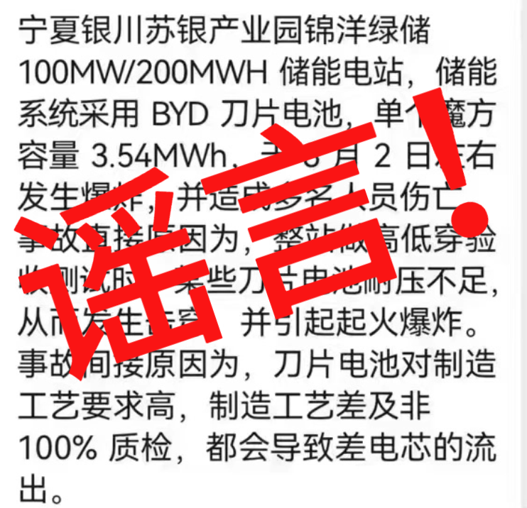 近日,有關(guān)“比亞迪儲(chǔ)能供貨的寧夏銀川錦洋綠儲(chǔ)儲(chǔ)能電站于2023年8月2日起火爆炸,造成多人傷亡”的圖片、視頻等在網(wǎng)絡(luò)傳播。