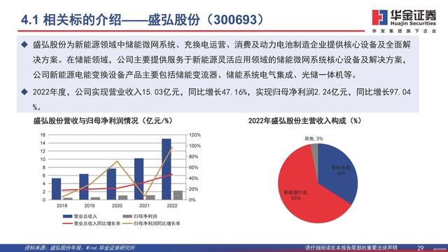 盛弘股份為新能源領(lǐng)域中儲能微網(wǎng)系統(tǒng)、充換電運營、消費及動力電池制造企業(yè)提供核心設(shè)備及全面解決方案。在儲能領(lǐng)域,公司主要提供服務(wù)于新能源靈活應(yīng)用領(lǐng)域的儲能微網(wǎng)系統(tǒng)核心設(shè)備及解決方案,公司新能源電能變換設(shè)備產(chǎn)品主要包括儲能變流器、儲能系統(tǒng)電氣集成、光儲一體機(jī)等。 2022年度,公司實現(xiàn)營業(yè)收入15.03億元,同比增長47.16%,實現(xiàn)歸母凈利潤2.24億元,同比增長97.04%。