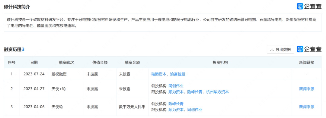 今年4月,順為資本投資碳什科技。碳什科技是一個碳族材料研發(fā)平臺,專注于導(dǎo)電劑和負(fù)極材料研發(fā)和生產(chǎn),產(chǎn)品主要應(yīng)用于鋰電池和鈉離子電池行業(yè)。