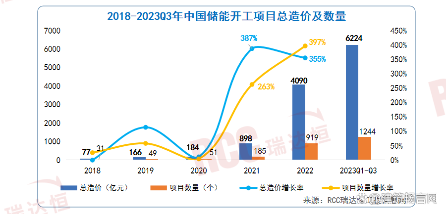 從RCC工程信息網(wǎng)項(xiàng)目數(shù)據(jù)庫中的儲能項(xiàng)目增長數(shù)據(jù)也能看出,2023年的儲能項(xiàng)目明顯增多,僅2023年前三季度的項(xiàng)目數(shù)量就比2022年全年增加了35%,其中大部分為工商業(yè)儲能項(xiàng)目。