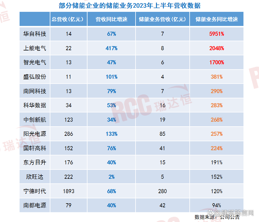 儲能企業(yè)陸續(xù)公布2023年上半年業(yè)績,近7成實(shí)現(xiàn)營收正增長,部分企業(yè)迎來儲能業(yè)績大爆發(fā)。華自科技、上能電氣、智光電氣儲能業(yè)務(wù)營收分別同比增長5951%、2048%、1700%。