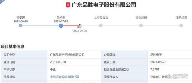 廣東品勝電子中止IPO,原計(jì)劃募資7.6億元