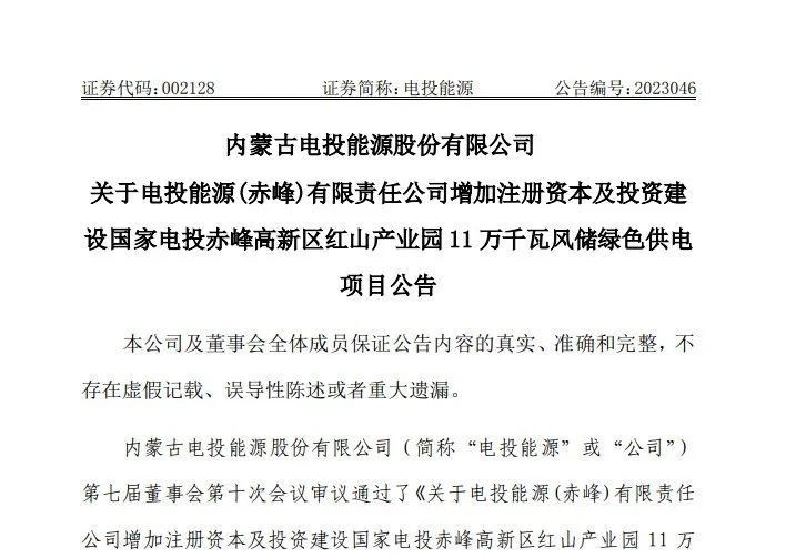 電投能源:計劃在赤峰建設(shè)16.25MW/65MWh磷酸鐵鋰+0.25MW/1MWh全釩液流電池混合儲能系統(tǒng)項目電投能源(002128.SZ)發(fā)布公告,公司擬對電投能源(赤峰)有限責(zé)任公司增加注冊資本,并投資建設(shè)國家電投赤峰高新區(qū)紅山產(chǎn)業(yè)園11萬千瓦風(fēng)儲綠色供電項目。擬將該公司注冊資本由450萬元增加至1.56億元。