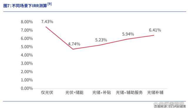 這意味著,無論是哪種情景,最終內(nèi)部收益率最高的都是僅光伏發(fā)電。