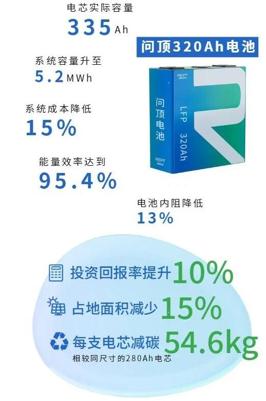 也就是說,當(dāng)瑞浦蘭鈞 320Ah 問頂儲能電池進(jìn)行規(guī)?;褂脮r,可實現(xiàn)系統(tǒng)成本降低 15%,占地面積減少 15%,投資回報率提升 10% 的目標(biāo),能極大提升客戶產(chǎn)品的市場競爭力,降低企業(yè)的周期性成本和資金風(fēng)險。此外,每支 320Ah 問頂電池相較同尺寸的 280Ah 電池可減碳 54.6kg,實現(xiàn)減碳減排,助力碳中和。