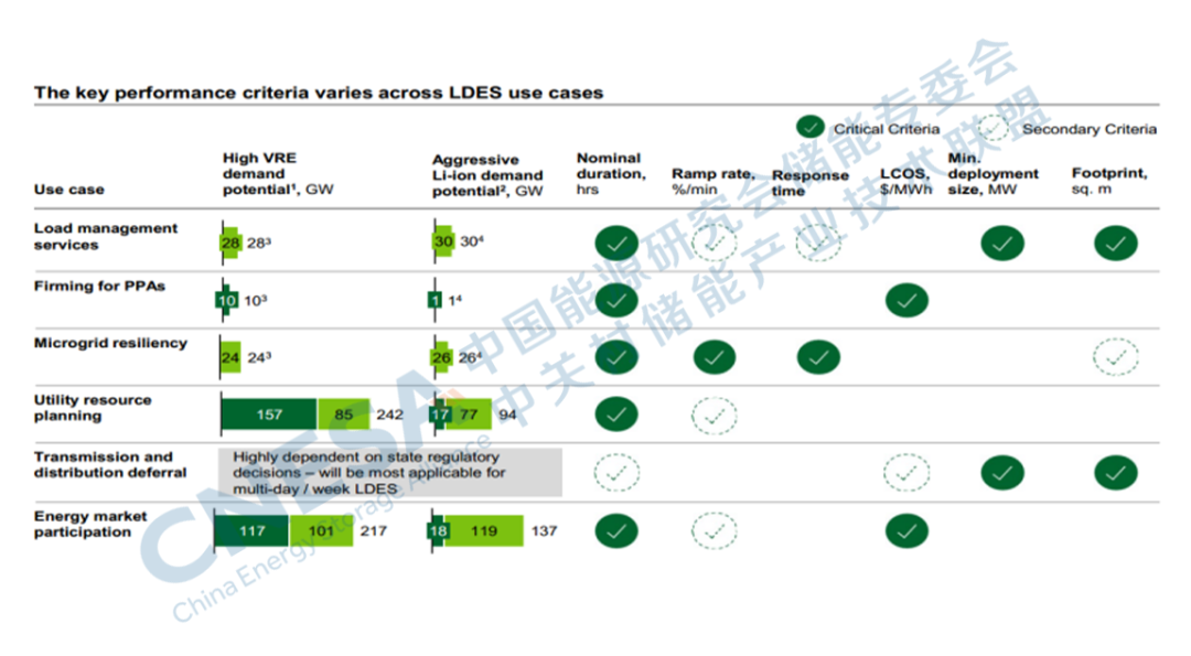 圖4:LDES在不同用例中所需關(guān)鍵性能標(biāo)準(zhǔn)
