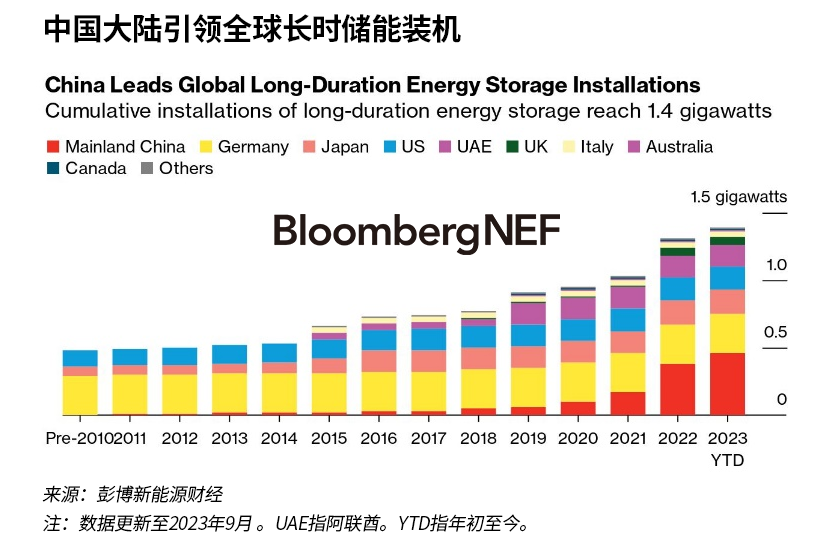 根據(jù)彭博新能源財經(jīng)的數(shù)據(jù),截止到今年9月,全球已經(jīng)投產(chǎn)的長時儲能達1.4GW/8.2GWh,而儲備項目已經(jīng)達到33GW/156GWh,其中,中國是最大的市場,占儲備項目裝機容量的92%。