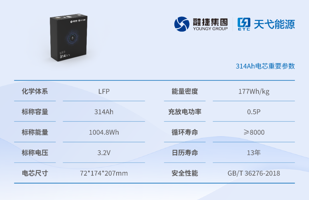 天弋能源最新下線的314Ah儲能電芯,謀準(zhǔn) “精準(zhǔn)一度電”,出擊大儲市場。該款電芯通過多尺度級配正極、高浸潤性電解液、孔隙率梯度分布等技術(shù),實現(xiàn)內(nèi)阻降低15%,循環(huán)次數(shù)達到8000次以上。