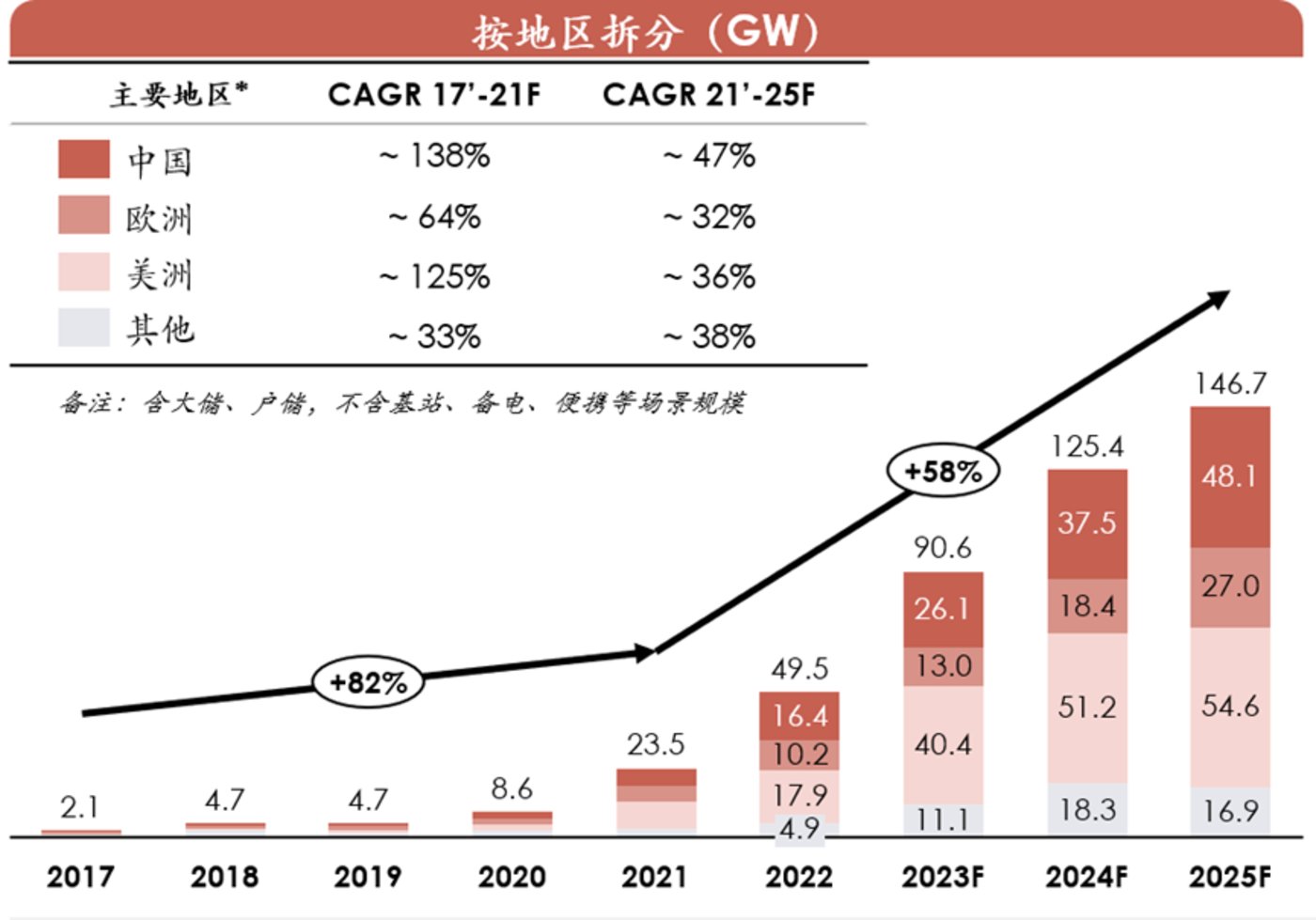 美國,拜登總統(tǒng)激動(dòng)地雙臂高振,IRA法案頒布,對(duì)新能源大力補(bǔ)貼支持。光伏裝機(jī)量預(yù)期增加,而美國電網(wǎng)跨區(qū)傳送難度大,對(duì)儲(chǔ)能的需求很強(qiáng)烈。