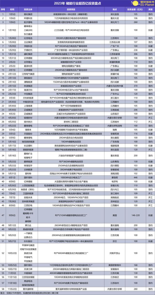 據(jù)星球儲(chǔ)能所不完全統(tǒng)計(jì),2023年儲(chǔ)能行業(yè)的超百億投資項(xiàng)目(僅限年內(nèi)宣布簽約、擬建的新項(xiàng)目或投資過(guò)百億的二期工程)共計(jì)58起,總金額超過(guò)7850億元人民幣,其中38個(gè)項(xiàng)目已完成簽約。