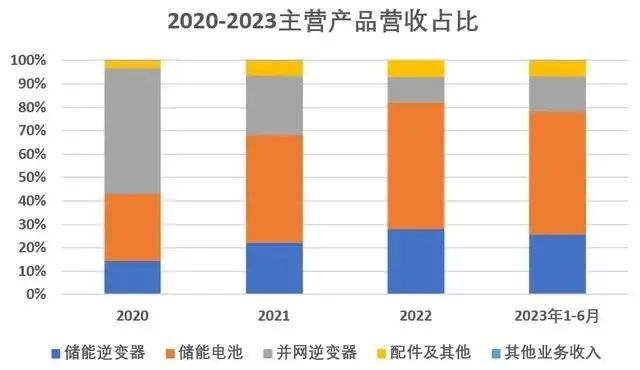 受益于戶儲(chǔ)市場(chǎng)的爆發(fā),2020年到2023年上半年,艾羅能源戶用儲(chǔ)能業(yè)務(wù)收入占主營(yíng)業(yè)務(wù)收入比重持續(xù)提升,分別為 42.83%、68.13%、81.89%和 78.36%。