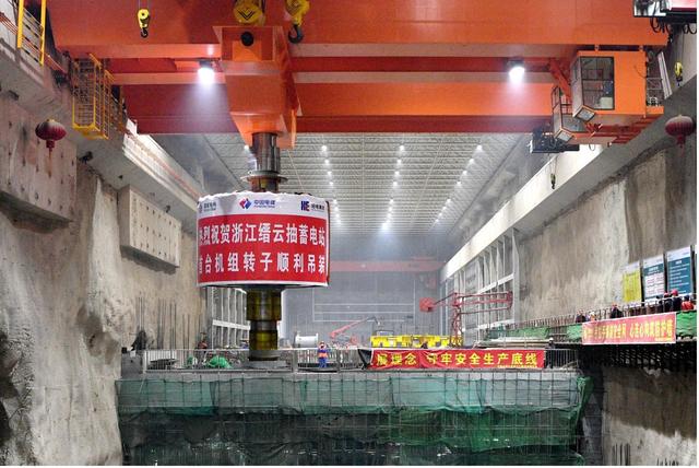 1月3日,國(guó)網(wǎng)新源浙江縉云抽水蓄能電站首臺(tái)機(jī)組轉(zhuǎn)子在兩臺(tái)250噸橋機(jī)合力吊裝下,跨越5個(gè)機(jī)坑,順利落入首臺(tái)機(jī)組機(jī)坑處。該電站首臺(tái)機(jī)組轉(zhuǎn)子的順利吊裝,標(biāo)志著首臺(tái)機(jī)組大件設(shè)備吊裝結(jié)束,正式進(jìn)入總裝階段。