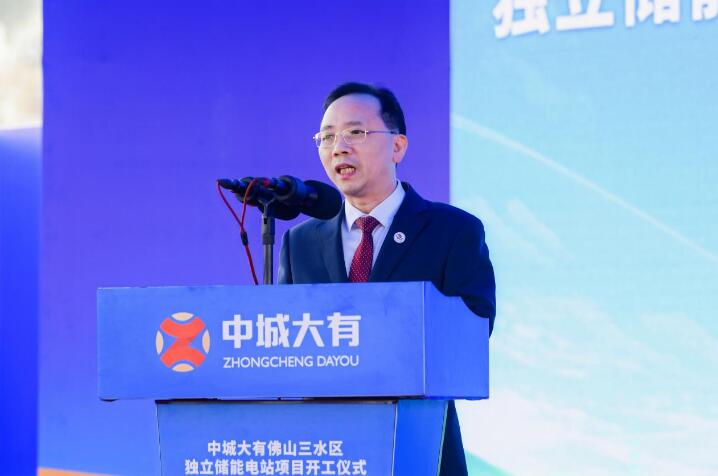 儀式開(kāi)始,佛山市三水區(qū)白坭鎮(zhèn)黨委副書記、鎮(zhèn)長(zhǎng)盧山首先致辭對(duì)項(xiàng)目表示祝賀,并指出該項(xiàng)目是三水區(qū)委十四屆六次全會(huì)暨區(qū)委經(jīng)濟(jì)工作會(huì)議后的首個(gè)動(dòng)工項(xiàng)目,也是全區(qū)首個(gè)、全市第二個(gè)獨(dú)立儲(chǔ)能電站示范項(xiàng)目,彰顯了只爭(zhēng)朝夕的“白坭速度”,體現(xiàn)了中城大有“大干快上”的高效作風(fēng)。他強(qiáng)調(diào),項(xiàng)目填補(bǔ)了園區(qū)儲(chǔ)能實(shí)際應(yīng)用場(chǎng)景的空白,樹(shù)立了園區(qū)新型儲(chǔ)能新高地建設(shè)的品牌標(biāo)桿,帶動(dòng)了園區(qū)一系列新型儲(chǔ)能重點(diǎn)產(chǎn)業(yè)的快速發(fā)展。