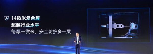 在安全防護(hù)方面,億緯鋰能也有多重創(chuàng)新設(shè)計(jì),首先在電池隔膜方面選擇了14微米復(fù)合膜,超越行業(yè)水平。與此同時(shí),億緯還開發(fā)了具有熱關(guān)斷的效應(yīng)的特殊隔膜涂層,當(dāng)溫度達(dá)到臨界值,涂層顆粒會融化關(guān)斷鋰離子的遷移,從源頭阻斷電芯熱失控的發(fā)生。