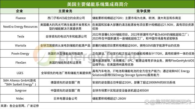 01 美國儲(chǔ)能市場(chǎng)主要集成商