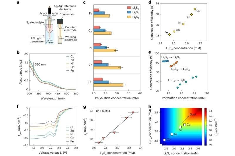 阿德萊德大學(xué)團(tuán)隊(duì)研究了硫還原反應(yīng)(SRR),這是控制鋰電池充放電速率的關(guān)鍵過(guò)程。他們對(duì)SRR過(guò)程中各種碳基過(guò)渡金屬電催化劑,包括鐵、鈷、鎳、銅、鋅等開(kāi)展了深入分析。結(jié)果顯示,SRR反應(yīng)的速率隨著多硫化物濃度的升高而增加,因?yàn)槎嗔蚧镌赟RR過(guò)程中起反應(yīng)中間體的作用。